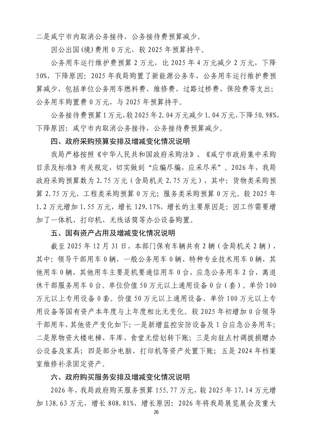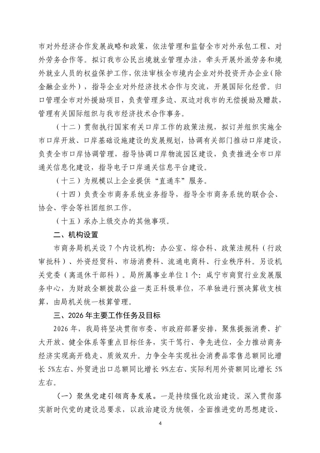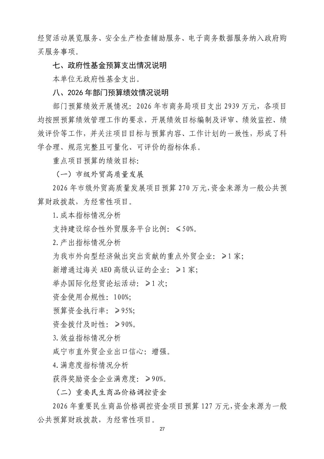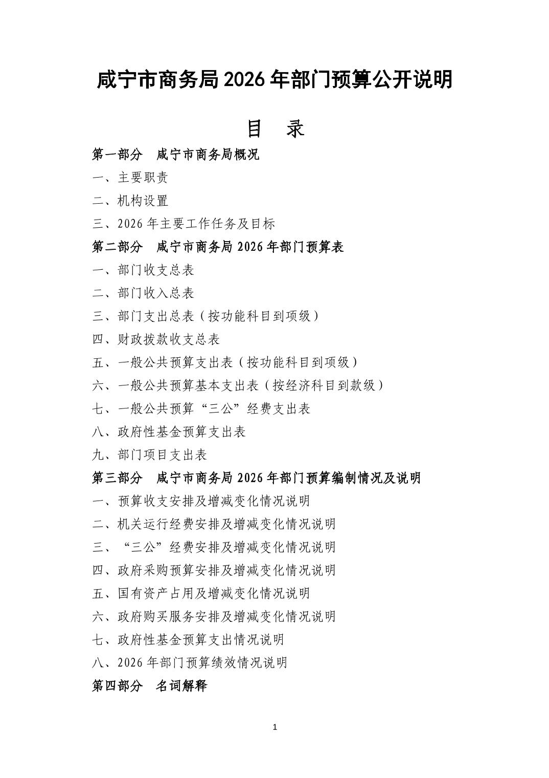 名 称: 咸宁市商务局2026年部门预算公开说明 发布日期: 2026年02月06日