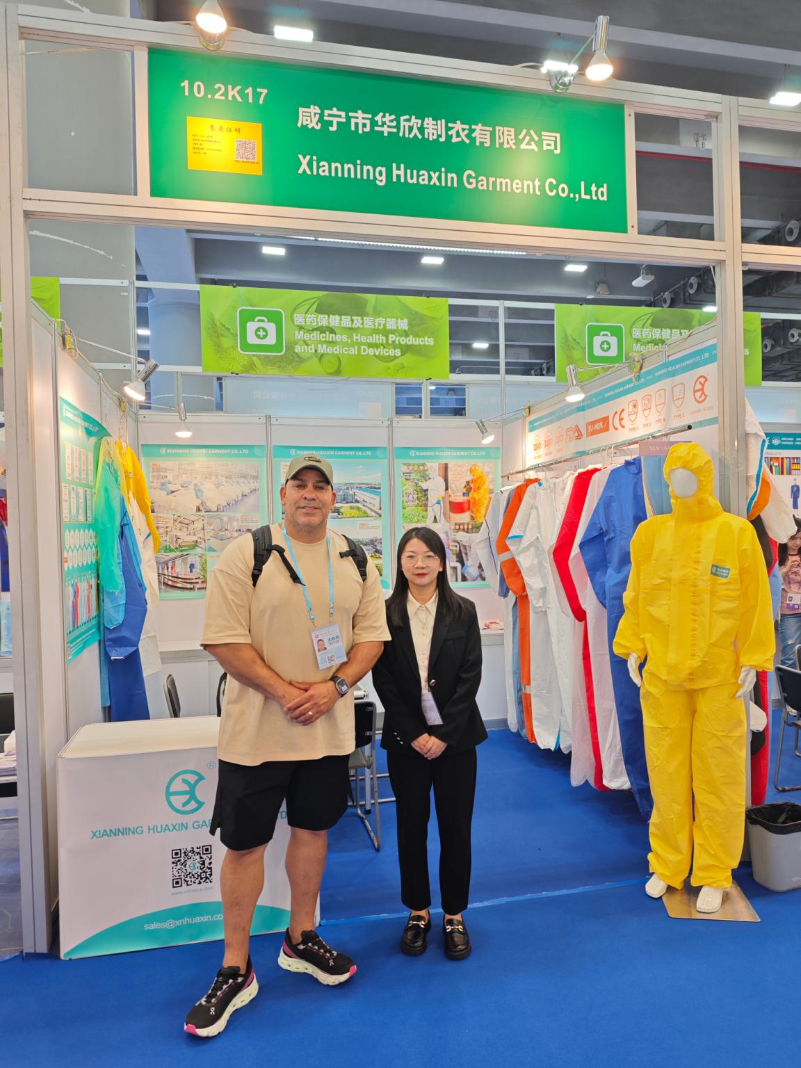 咸宁市华欣制衣有限公司以“一次性防护服”为主打,展位以“功能·舒适·便捷”的体验设计吸引了大量关注。公司精心准备了各种样品、英文产品手册与规格表,便于采购商直观检验面料与做工,现场演示让买家对产品的防护性能与佩戴舒适度印象深刻。展会期间,华欣接待海外客商约70人次,达成意向订单12笔,意向金额约67.7万美元,客户来源覆盖英国、葡萄牙、德国、俄罗斯、智利、韩国等市场。企业展位负责人曾玲表示:将加快样品检测与合同谈判,争取把意向尽快转化为实单出货,让本次广交会的成效立竿见影。