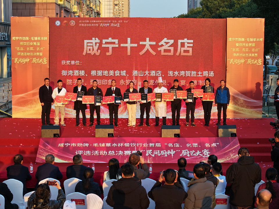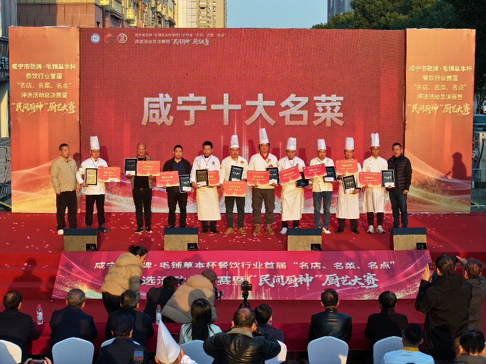 云上咸宁报道(记者 章浩文 冯梦雪 通讯员 王曼君 董煜)烟火升腾处,风味定乾坤。12月5日,咸宁锦绣城广场被氤氲香气与滚烫人气双重点燃,咸宁市餐饮行业首届“名店、名菜、名点”评选活动总决赛暨“民间厨神”厨艺大赛收官,备受瞩目的“十大名店”“十大名点”“十大名厨”和“咸宁民间厨神”榜单正式揭晓,为温泉旅游季注入浓郁的鄂南烟火气。